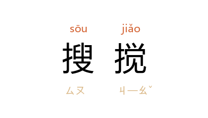引唐 韩愈 《岳阳楼别窦司直》诗:“炎风日搜搅,幽怪多冗长。”宋 黄庭坚 《谢送碾赐壑源拣芽》诗:“搜搅十年灯火读,令我胸中书传香。”宋 方岳 《赵龙学寄阳羡茶》诗:“相思几梦山阴雪,搜搅平生书五车。”