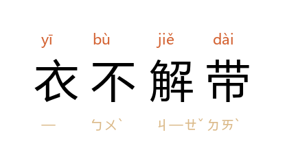⒈ 没有解开衣带,和衣就寝。比喻辛勤不懈。