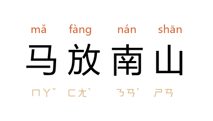 ⒈ 南山,华山之南,本非牛马生长之地。马放南山指将马放牧于华山之南,使其自生自灭,不再乘用。语本比喻不再征战用兵。