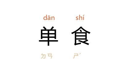 ⒈ 只有一种菜肴的饭食。形容食物简朴。