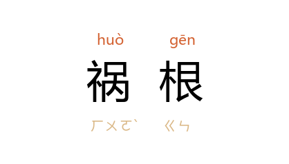 ⒈ 祸事的根源,也指引起祸事的人或事物。