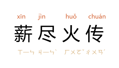 ⒈ 本指柴薪烧尽了,而火种仍可留传。语本后比喻师生授受不绝、传承绵延不尽,世代相传。也作「薪火相传」、「薪传」。