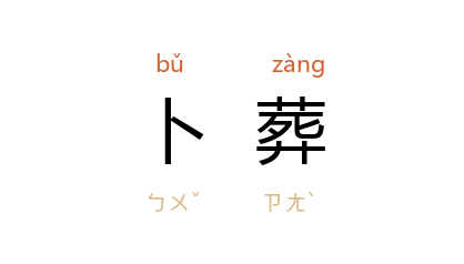 ⒈ 古代埋葬死者,先占卜以择吉祥之葬日与葬地,称为“卜葬”。《礼记·杂记下》:“卜葬其兄,弟曰'伯子某'。”孔颖达疏:“谓卜葬择日而卜人祝龟之辞也。”后即为择时地安葬之代称。