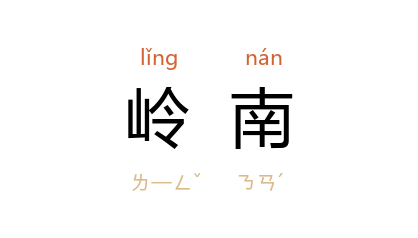 ⒉ 广东。因其在五岭以南,故通称为「岭南」。
