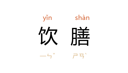 引《晋书·孝友传·李密》:“刘氏 有疾,则涕泣侧息,未尝解衣,饮膳汤药必先尝后进。”《旧唐书·职官志三》:“家令掌太子饮膳、仓储、库藏之政。”《明史·后妃传二·光宗康妃李氏》:“朕蒙皇考令选侍抚视,饮膳衣服皆皇祖、皇考赐也。”