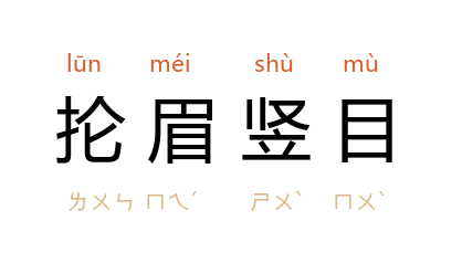 例如:「同事之间需和睦相处,何必动辄抡眉竖目的闹得不愉快呢?」