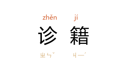 引《史记·扁鹊仓公列传》:“今臣 意 所诊者,皆有诊籍。所以别之者,臣 意 所受师方适成,师死,以故表籍所诊,期决死生,观所失所得者合脉法,以故至今知之。”元 戴良 《沧洲翁传》:“郑 復教翁日记诊藉,考方药验否,悉为参订,不使毫釐失理。”