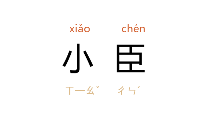 ⒈ 春秋以后指卑微的小吏。宫中执役的宦官。臣子在君王前的自称。