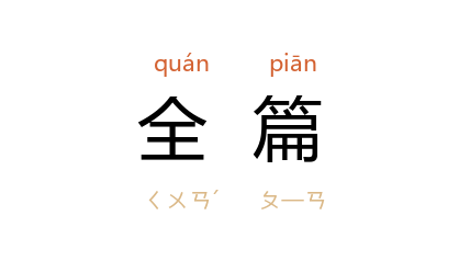 引唐 李山甫 《禅林寺作寄刘书记》诗:“天竺 老师留一句, 曹溪 行者答全篇。”鲁迅 《且介亭杂文二集·“题未定”草(七)》:“不过我总以为倘要论文,最好是顾及全篇,并且顾及作者的全人,以及他所处的社会状态,这才较为确凿。”
