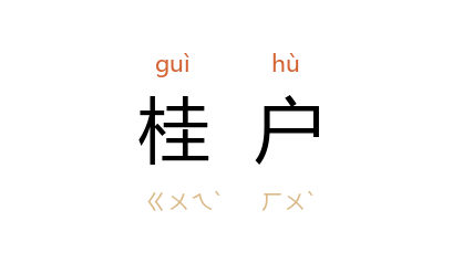 引南朝 梁简文帝 《晚景纳凉》诗:“珠帘影空捲,桂户向池开。”唐太宗 《赋帘》诗:“彩散银钩上,文斜桂户中。”唐 钱起 《朝元阁赋》:“当桂户而八水悠远,植玉阶而千巖相抗。”明 朱灏 《逃暑赋》:“渴虯静饮寒漏兮,传桂户而不闭。”