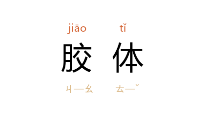 ⒈ 一种物质(如凝胶、蛋白或淀粉),虽然易溶于水或其这液体,但不能扩散透过膜或非常缓慢,并显示出其他一些特性(如对液体的冻点或蒸气压无显著影响)