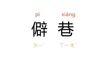 引唐 于鹄 《题邻居》诗:“僻巷邻家少,茅簷喜并居。”宋 曾巩 《送周屯田序》:“约居而独游,散弃乎山墟林莽、僻巷穷閭之间。”《儒林外史》第二四回:“不论你走到一个僻巷里面,总有一个地方悬着灯笼卖茶。”