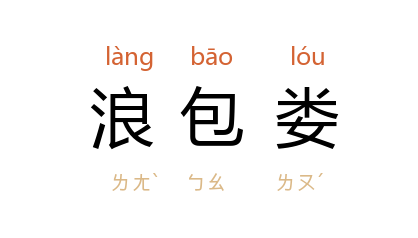 引元 高文秀 《黑旋风》第四折:“端的是泼无徒贼子,更和著浪包娄出尽了丑、丑。”元 无名氏 《替杀妻》第一折:“欺负俺哥哥又无亲无眷,不曾见浪包娄养汉到(倒)赔钱。”亦作“浪包嘍”、“浪包搂”。 元 乔吉 《两世姻缘》第一折:“如今些浪包嘍难註烟花选,哨禽儿怎入鶯花传!”元 无名氏 《村乐堂》第二折:“荒淫怎坐夫人位,除了名字有何妨,着这箇浪包搂一迷里胡廝谎。”