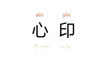 引宋 郭若虚 《图画见闻志·论气韵非师》:“且如世之相押字之术,谓之心印。本自心源,想成形跡,跡与心合,是之谓印。爰及万法,缘虑施为,随心所合,皆得名印。”