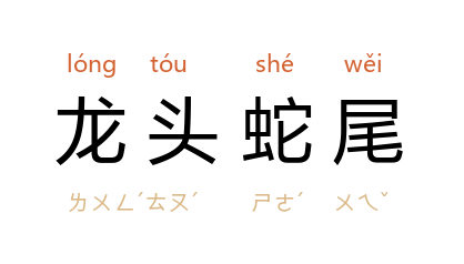 ⒈ 龙头大,蛇尾小。比喻作事有始无终。也作「虎头蛇尾」、「虎头鼠尾」。