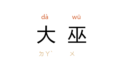 引《史记·滑稽列传》:“其巫,老女子也,已年七十。从弟子女十人所,皆衣繒单衣,立大巫后。”宋 陆游 《龙湫歌》:“明朝父老来赛雨,大巫吹簫小巫舞。”
