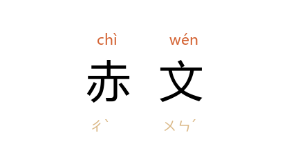 引《艺文类聚》卷十一引《尚书中候》:“帝尧 即政,荣光出 河,休气四塞,龙马衔甲,赤文緑色。”《宋书·符瑞志上》:“《龙图》出 河,《龟书》出 洛,赤文篆字,以授 轩辕。”《宋书·符瑞志上》:“又有黑龟,并赤文成字,言 夏桀 无道, 汤 当代之。”唐 骆宾王 《为齐州父老请陪封禅表》:“故得 河 浮五老,启赤文于帝期;海荐四神,奉丹书于王会。”
