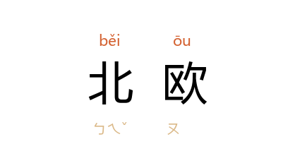 ⒈ 欧洲 北部,包括 丹麦、挪威、瑞典、芬兰 和 冰岛 等国家。