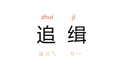 引《六部成语注解·刑部》:“追缉:罪犯逃走,追而捕之也。”《快心编二集》第六回:“主人必欲追缉 凌公子,却有合学生员 张玉飞 为首,替 凌公子 出呈。”巴人 《莽秀才造反记》第十五章:“更有的是杀人的凶犯,隐名吃粮,借避追缉。”