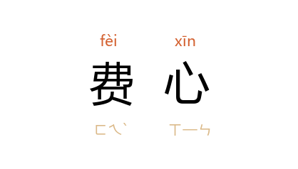 ⒈ 操心;耗费心思(多用于请求和致谢)