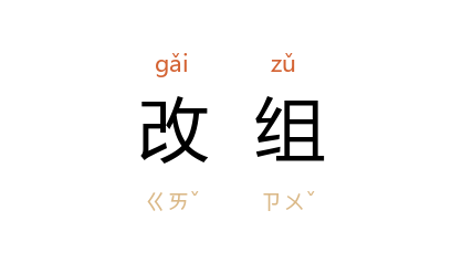⒈ 政府、机关、政党、社团等改变原有组织体系,变更其组成人员。