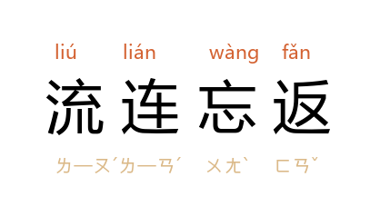 ⒈ 贪恋沉迷于游乐而忘了回去。后形容徘徊、留恋而不忍离去。也作「留连忘返」。