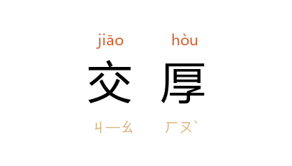 引明 祁元孺 《错转轮》第一折:“我主见他练达可用,时常宣召论律,因此与他交厚。”《醒世恒言·薛录事鱼服证仙》:“我与你同登 天宝 末年进士,在都下往来最为交厚。”《初刻拍案惊奇》卷三三:“自此与 天瑞 认为郎舅,往来交厚。”