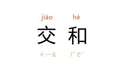 引汉 张衡 《东京赋》:“阴阳交和,庶物时育。”明 杨慎 《凤赋》:“黄帝 晨坐於 扈阁,降观於 荣阿,有鸟来巢,命音交和。”