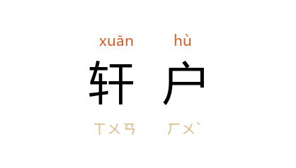 引汉 王充 《论衡·幸偶》:“均之土也,或基殿堂,或涂轩户。”唐 高适 《和窦侍御登凉州七级浮图之作》:“空色在轩户,边声连鼓鼙。”唐 白居易 《晚归香山寺因咏所怀》:“中有古精舍,轩户无扃关。”