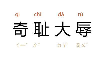 例如:「满清时期和各国订定的不平等条约,对中华儿女来说,是历史上的奇耻大辱。」