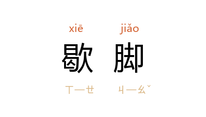 ⒈ 行路疲乏而暂时休息。也作「歇腿」、「歇足」。