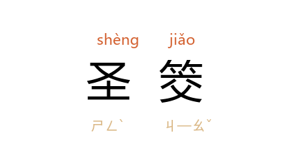 引宋 叶梦得 《石林燕语》卷一:“太祖皇帝 微时,尝被酒入 南京 高辛庙,香案有竹杯筊,因取以占己之名位,以一俯一仰为圣筊。”