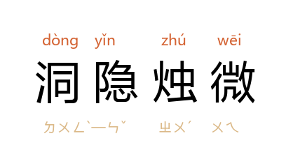 引清 马建忠 《上李伯相言出洋工课书》:“﹝学师﹞谓( 马建忠 )能洞隐烛微,提纲挈领,非徒钻故纸者可比。”亦作“洞幽烛微”。 《人民文学》1978年第2期:“要使作品比普通的实际生活更高,那就必须像 鲁迅 先生那样,具有在他那个时代来说是先进的、革命的世界观,具有高瞻远瞩,洞幽烛微的慧眼。”