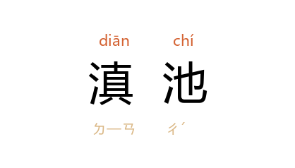 ⒈ 又称 昆明湖、昆明池、滇南泽。在 云南省 昆明市 西南。东西两岸,有 金马、碧鸡 两山夹峙。湖水在西南 海口 泄出称 螳螂川,为 金沙江 支流 普渡河 上源。