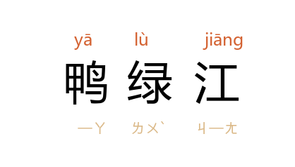 ⒈ 河川名。位于辽宁省东南边。源出松江省长白山南麓,西南流至安东省安东市入黄海。长七百九十公里,为中韩界河。水色绿如鸭头,故称为「鸭绿江」。也作「鸭渌水」。