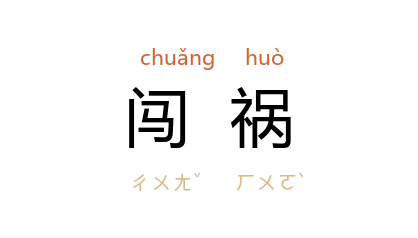 引《西游记》第八三回:“这太子三朝儿就下海净身闯祸,踏倒水晶宫。”《说唐》第二十回:“他乃是一个惯好闯祸的卖盐浪汉。”沈从文 《大小阮》:“猜出 小阮 一定在一点钟前就用这手枪闯祸,说不定已打死了人。”