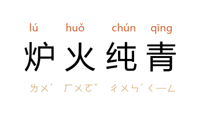 ⒈ 炉火,古时称道家炼丹之术为「炉火」。炉火纯青,指炼丹成功时,炉火火焰由红色转成纯青色。后比喻学问、技术、功夫等到达精纯完美的境地。