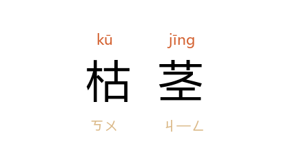 引明 刘基 《短歌行》:“髮肤剥削稜骨生,鲜芳菸悒成枯茎。”明 刘基 《羲和》诗:“断梗枯茎付野蒿,冷风凉雨剥征袍。”《花月痕》第十四回:“他会画菊,更爱艺菊,凭你枯茎残蕊,他一插就活。”