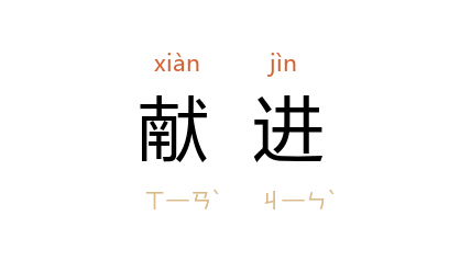 引明 蒋一葵 《长安客话·皇都杂记·白燕》:“万历 二年,翰林院中白燕双乳,辅臣以献进两宫。”郭沫若 《星空·孤竹君之二子》:“每年献进 朝歌城 的美女,不知道有多少人呵。”