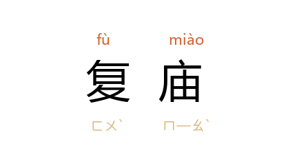 ⒈ 古代称采用双层屋椽、双层屋笮等结构来建造的宗庙为复庙。復,通“复”。参见“复屋”。