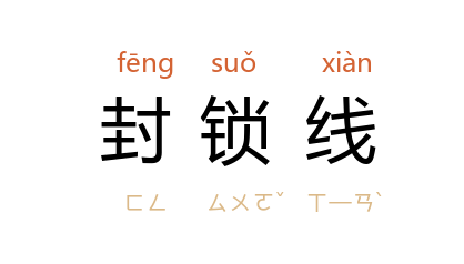 ⒈ 以武装部队、警察或人为的设施对某一区域实行封锁隔离的警戒线,亦指以炮火封锁的地带。