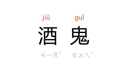 例如:「事业失败以后,他终日借酒浇愁,成了个酒鬼。」
