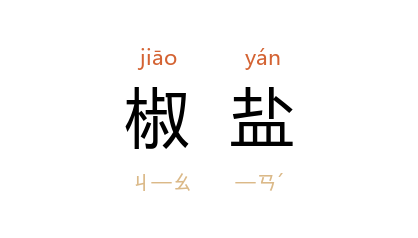 ⒈ 将烘焙过的花椒和盐碾碎制成的调味品。