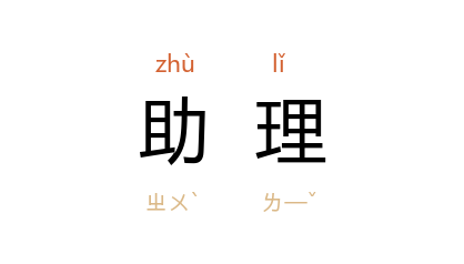 例如:「你的助理告诉我,在这里可以找到你。」、「他的工作很繁琐,因此他聘了三、四个助理来帮忙。」
