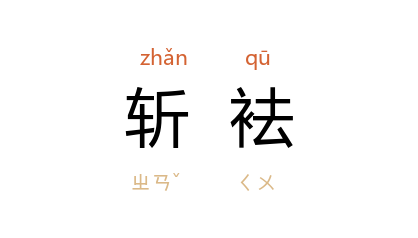 ⒈ 斩断其袖。借指旧怨。典出《左传·僖公五年》:“﹝重耳﹞逾垣而走,披斩其袪。”杜预注:“袪,袂也。”孔颖达疏:“总名为袂,其袂近口,又别名为袪。此斩其袪斩其袖之末也。”