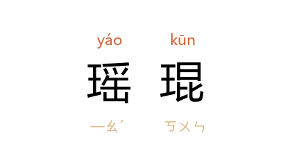 ⒈ 语出《书·禹贡》:“厥贡惟金三品,瑶、琨、筱、簜。”孔传:“瑶、琨皆美玉。”后用以泛指美玉美石。