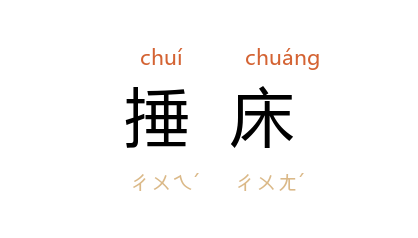 引《玉台新咏·古诗<为焦仲卿妻作>》:“阿母得闻之,搥牀便大怒。”《南史·恩倖传·茹法亮》:“先帝故人多见摈斥,今召而使之,谁不慷慨?近闻 王洪范 与 赵越常、徐增亮、万灵会 共语,皆攘袂搥牀。”宋 陆游 《草书歌》:“此时驱尽胸中愁,搥牀大叫狂堕幘。”