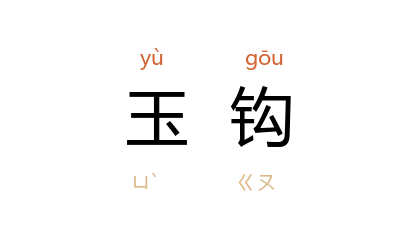 ⒈ 玉制的挂钩。亦为挂钩的美称。