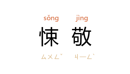引《太平广记》卷二〇三引《耳目记·王中散》:“王生 因别弹一曲,坐客弥加悚敬。”宋 文莹 《玉壶清话》卷十:“舟未至, 鉉 先謁之,称‘ 江 南放叟 徐鉉 ’。 湘 素闻其名,悚敬迎拜。”清 颜星 《重刊<颜氏家训>小引》:“悚敬操持,不徒作语言文字观。”