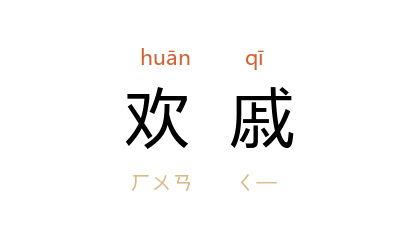 引三国 魏 嵇康 《答难养生论》:“请问锦衣绣裳,不陈於暗室,何必顾众,而动以毁誉为欢戚也?”晋 葛洪 《抱朴子·至理》:“遣欢戚之邪情,外得失之荣辱。”宋 苏轼 《散郎亭》诗:“欢戚已随时事去,壁间只有古人名。”